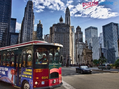 Puzzle Ulica, Drapacze, Chmur, Autobus