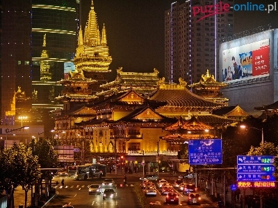 Puzzle Ulica, Szanghai, Domy, Samochody
