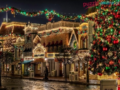 Puzzle ÅšwiÄ…teczne, Domy, Ulica, Dekoracje