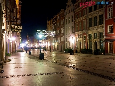 Ulica, Gdańsk, Latarnie, Miasto, Noc, Kamienice