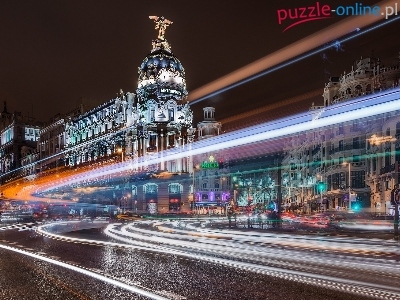 Madryt, Ulica, Domy, Biurowiec, Hiszpania, Budynek Metrópolis, Światła