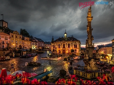 Ulice, Miasto, Pomnik, Austria, Nocą, Domy