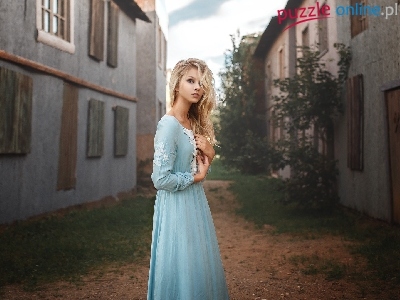 Puzzle Uliczka, Kobieta, Blondynka, Domy
