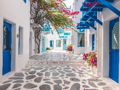 Niebieskie, Grecja, Domy, Uliczka, Białe, Santorini, Drzwi