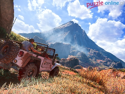 Różowy, Gry, Góry, Wulkan, Samochód, PC, XBOX, Terenowy, Uncharted 4 A Thiefs End, PS4