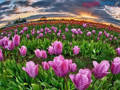 Puzzle Uprawa, Zachód, Słońca, Tulipanów