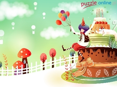 Puzzle Urodziny, Pajacyk, Tort, Fantasy