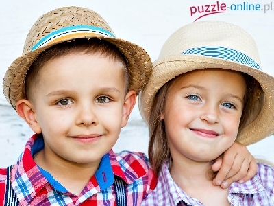 Puzzle Uśmiech, Dziewczynka, Chłopiec, Kapelusze
