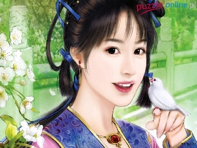 Puzzle Dziewczyna, Uśmiechnięta, Ptaszek
