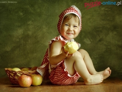 Puzzle Dziewczynka, Uśmiechnięta, Jabłka