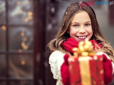 Puzzle Dziewczynka, Uśmiechnięta, Prezent