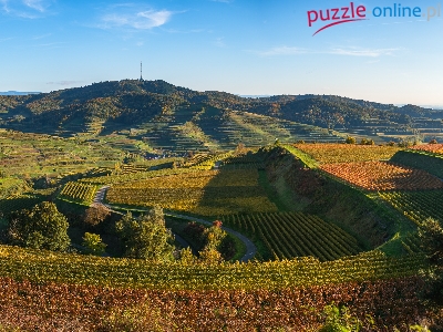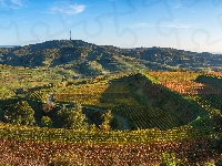 Vogtsburg Kaiserstuhl, Niemcy, Drzewa, Wzgórza, Droga, Winnice, Góry, Pola