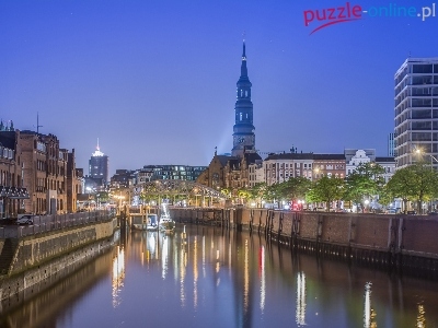 Kościół Św. Katarzyny, Hamburg, Kanał, Niemcy, Most, Światła