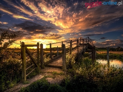 Hrabstwo Northamptonshire, Chmury, Most, Wieś Wadenhoe, Drewniany, Anglia, Rzeka Nene, Zachód Słońca