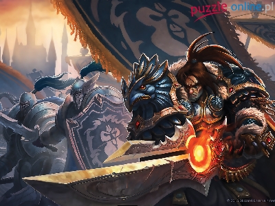 Varian Wrynn, World of Warcraft, Gra, Postać, Ptak, Rycerze, Walka, Król, Sztandary