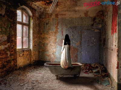 Wanna, Kobieta, Wnętrze, Ruina, Krew