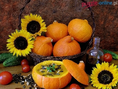 Warzywa, Kompozycja, Dynie, Słoneczniki, Olej