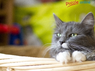 Puzzle Wąsy, Czarny, Kotek, Koszyk