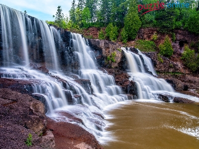 Skały, Drzewa, Gooseberry River, Minnesota, Wodospady, Rzeka, Stany Zjednoczone, Waterfalls Middle Falls