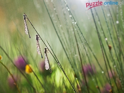 Ważki, Deszcz, Bokeh, Łąka, Trzy, Rozmycie