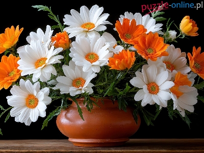 Puzzle Białe, Kwiaty, Pomarańczowe, Wazon