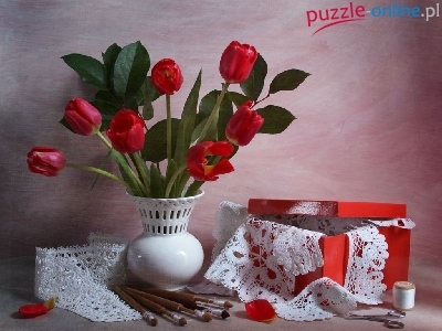Puzzle Czerwone, Wazon, Tulipany
