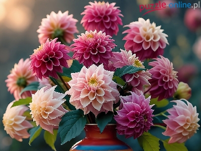 Puzzle Dalie, Kwiaty, Kolorowe, Wazon