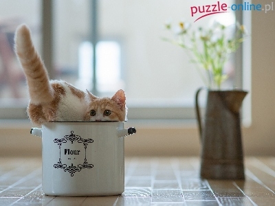 Puzzle Wazon, Kot, Garnek, Kwiaty