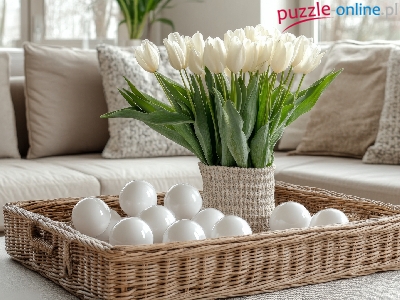 Kulki, Tulipany, Białe, Wazon, Kompozycja, Koszyczek