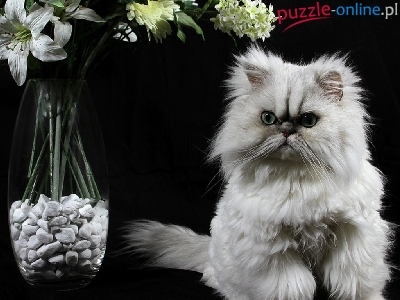 Puzzle Wazon, Biały, Kotek, Kwiaty