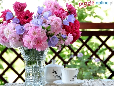 Wazon, Bukiet, Kolorowe, Kwiaty, Filiżanka