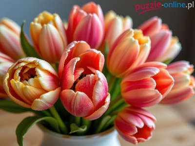 Puzzle Kwiaty, Tulipany, Kolorowe, Wazon