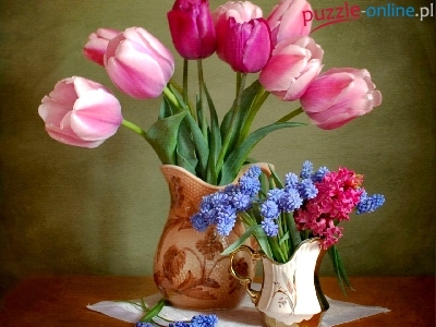 Puzzle Kwiaty, Wazon, Tulipany