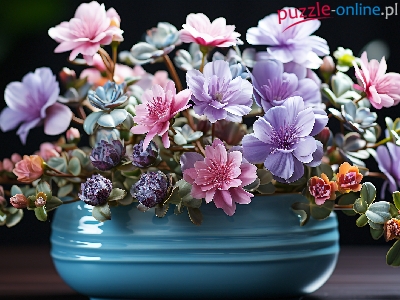 Puzzle Niebieski, Kolorowe, Kwiaty, Wazon