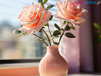Kwiaty, Wazon, Róże, Okno, Grafika