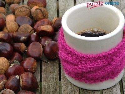 Kubek, Wełniana, Orzechy, Handmade, Kawa, Włóczka, Opaska