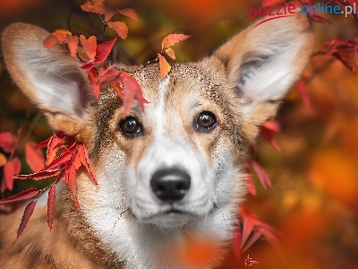 Puzzle Liście, Welsh corgi pembroke, Pies