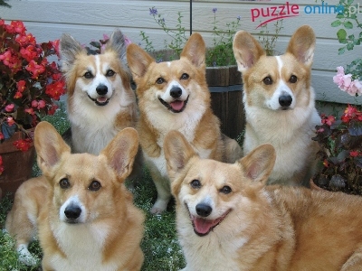 Puzzle Welsh Corgi Pembroke, Psy, Pasterskie, Ogród