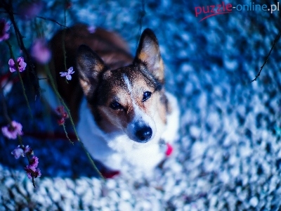 Puzzle Welsh corgi pembroke, Pies, Kwiatki