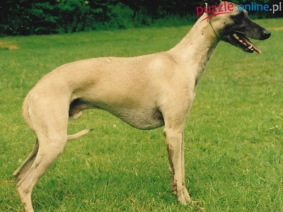 Puzzle zielona, Whippet, trawa