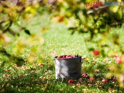 Puzzle Wiaderko, Lato, Jabłka, Liście