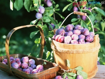 Puzzle Wiaderko, Śliwki, Koszyczek, Liście