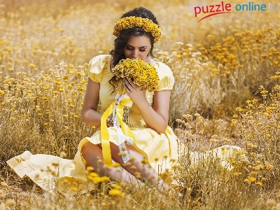 Wianek, Kwiatów, Kobieta, Łąka, Bukiet