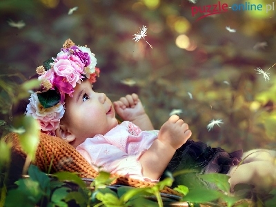 Puzzle Wianek, Dziecko, Dziewczynka, Kwiaty