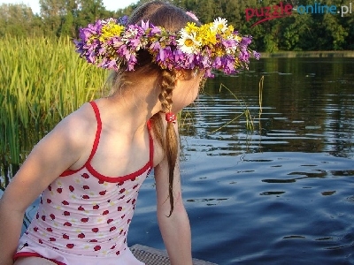 Wianek, Jezioro, Dziecko, Dziewczynka, Kwiaty