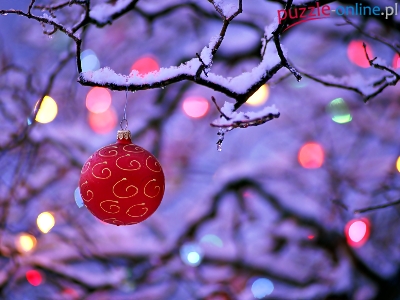Śnieg, Dekoracja, Boże Narodzenie, Bombka, Zima, Gałąź, Świąteczna