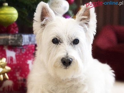 Mordka, Świąteczne, Pies, West highland white terrier, Ozdoby