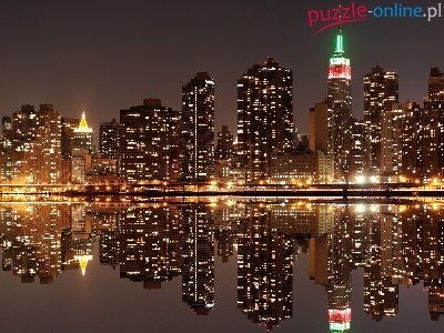 Światła, Miasta, Odbicie, Panorama, Noc, Woda