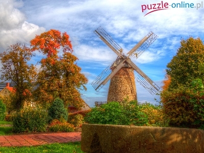 Wiatrak, HDR, Jesień, Drzewa, Dom