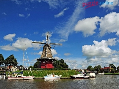 Puzzle Łodzie, Wiatrak, Niebo